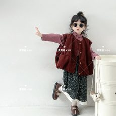 小小大星球童装 棉麻原胚钩花套装 女童斜木扣背心+空气裤两件套
