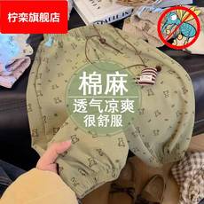 儿童棉麻防蚊裤夏季薄款男女童灯笼裤中大童束脚裤轻薄空调长裤子