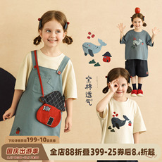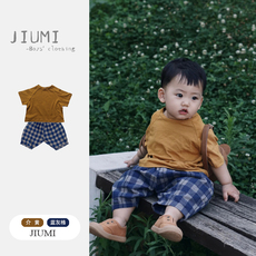 男宝2025夏新品纯棉宽松韩版短袖T恤上衣 儿童格子棉麻阔腿五分裤