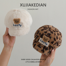 儿童羊羔毛绒棒球帽保暖防风防寒可爱豹纹猫耳朵女童鸭舌帽亲子款