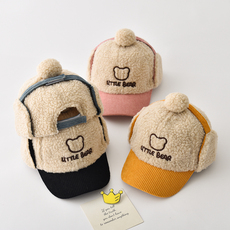 韩系儿童秋冬灯芯绒棒球帽男童女童可爱小熊防风鸭舌帽宝宝帽子潮