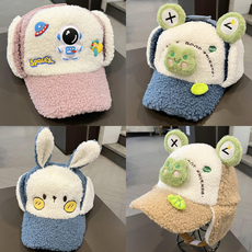 儿童帽子女童可爱护耳鸭舌帽毛绒兔雷锋帽男宝宝棒球帽保暖秋冬款