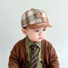 春秋儿童帽子卡通可爱小熊鸭舌帽男女童百搭灯芯绒棕熊亲子棒球帽