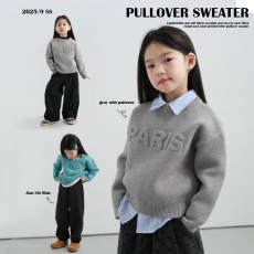 PISELLI史豌豆女童圆领毛衣2025冬季新款小女孩加厚字母套头上衣