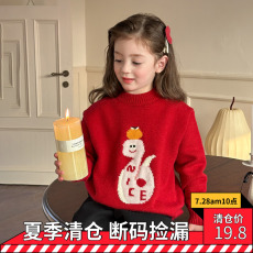 清仓 女童新年红小蛇卡通毛衣宝宝套头拜年服上衣儿童加厚柔软针