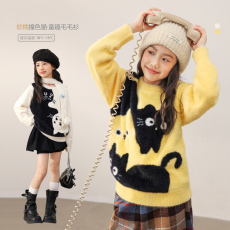 女童毛衣儿童秋冬新款针织打底衫大童保暖仿貂绒加厚上衣女孩童装