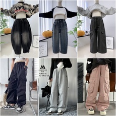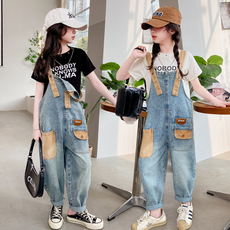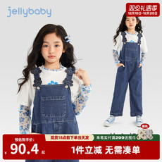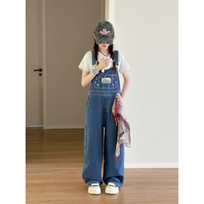 女大童背带裤【老友计小心机】青少年2025秋装新款牛仔直筒阔腿裤