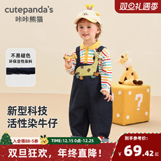 咔咔熊猫宝宝牛仔背带裤秋装儿童卡通裤子春秋男宝休闲长裤秋款潮
