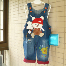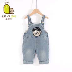 清仓处理春秋小童牛仔背带裤子宝宝婴幼儿童装卡通可爱长裤可开档