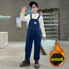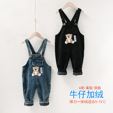 新生婴儿裤子春秋季宝宝背带裤牛仔儿童长裤夹棉加厚保暖外穿冬装