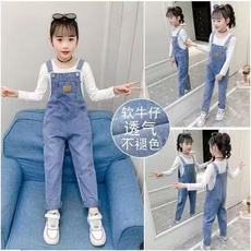 女童牛仔背带裤春秋季款休闲童装百搭工装裤直筒裤中大童洋气长裤