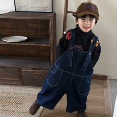 春秋新款童装 男女儿童宽松舒适牛仔背带裤直筒裤子 110-150码