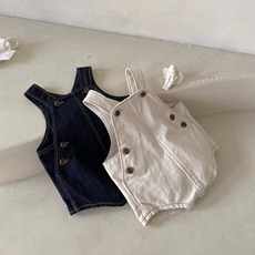 男女宝宝宽松洋气牛仔连体衣秋季中小童哈衣爬服婴幼儿无袖背带裤
