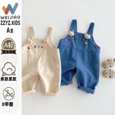 儿童时尚背带裤2025新款春季男童小熊牛仔裤女童裤子宝宝柔软春装