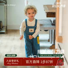 whitewheat儿童2025春季新款裤子女童卡通长裤男孩纯棉牛仔背带裤