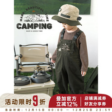 暮晨家新款秋装2025男童明线牛仔裤中小童宽松洋气工装背带裤长裤