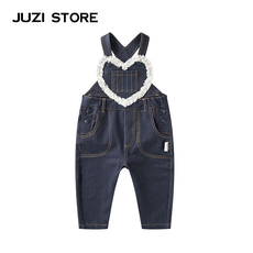 JUZI STORE童装针织牛仔甜美爱心网纱蝴蝶结背带裤女童1830714