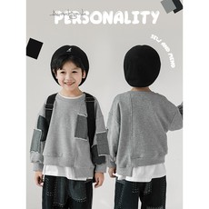 幼悠男童时尚撞色拼布提花补丁牛仔裤秋冬新款儿童帅气背带裤套装