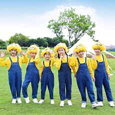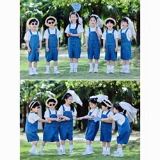 小学生牛仔啦啦队毕业儿童幼儿园六一套装演出服背带裤表演服装