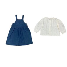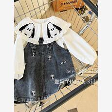 女童牛仔背带裙套装2024春秋款童装儿童女孩白色提花娃娃衫两件套