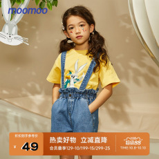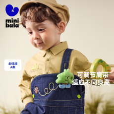 【软牛仔】迷你巴拉巴拉男女童裤子不易褪色宽松直筒裤宝宝背带裤