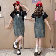 女童背带裙夏季薄款2024新款大童洋气牛仔连衣裙女孩夏装儿童裙子