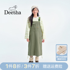 笛莎官旗秋冬新款青少年女大童初高中生牛仔面料梭织宽松背带裙
