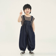韩版牛仔裤童装男童背带裤夏季新款儿童复古仿牛仔垂感薄款中小童