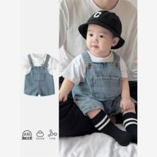 2024秋装男女宝宝牛仔背带裤婴幼儿洋气背带短裤时髦儿童裤子春夏