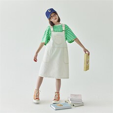 棵初2024新款夏季女童白色牛仔背带裙亲子款全棉百搭休闲连衣裙