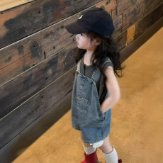 韩国女童夏季复古牛仔背带短裤夏款儿童新款洋气宽松背带裤童裤子