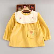 儿童吃饭罩衣长袖防水防脏围兜薄款透气画画衣女宝宝洋气围裙外穿