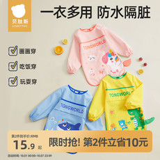 贝肽斯宝宝吃饭围兜防水防脏画画罩衣婴儿辅食饭兜幼儿园儿童围裙