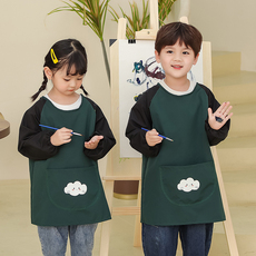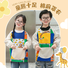画画罩衣儿童长袖围裙夏季男童美术反穿护衣女宝宝吃饭防水兜定制