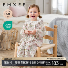 英氏100%纯棉儿童睡衣女童春夏季薄款短袖七分裤家居服套装空调服