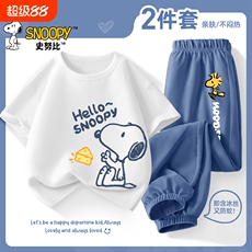 史努比儿童套装男童夏季2025新款纯棉短袖防蚊裤两件套夏装帅气