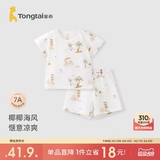 童泰婴儿套装纯棉夏季薄款男女宝宝衣服儿童内衣提花网眼短袖短裤