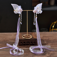 古风发饰小女孩中国风女童发夹新年头饰儿童蝴蝶飘带表演对夹配饰