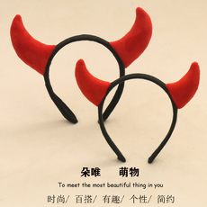 可爱红色牛角发箍万圣节恶魔角发卡超萌卡通成人儿童活动表演头饰
