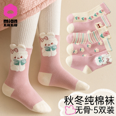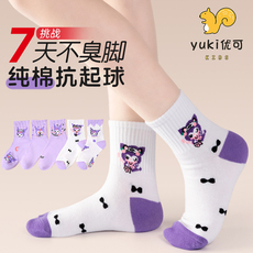 库洛米女童纯棉袜子春秋款卡通儿童袜女孩秋冬季防臭学生中筒棉袜
