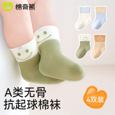 【100%棉】宝宝袜子婴儿春秋纯棉a类男童不勒腿秋冬儿童中筒袜秋