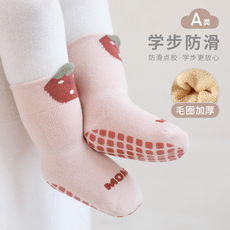 婴儿童地板袜春秋冬季加厚保暖宝宝室内软底防滑隔凉学步无骨袜子