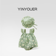婴儿夏装吊带哈衣套装女宝宝包屁衣网纱公主裙百天新生儿夏季衣服
