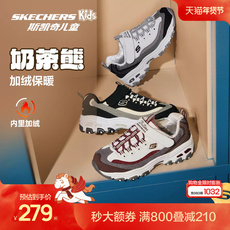 Skechers斯凯奇儿童奶茶熊秋冬复古熊猫老爹鞋女童保暖运动二棉鞋