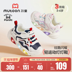 牧童男童学步鞋2025秋冬新款闪灯运动鞋女童皮面加绒保暖发光童鞋
