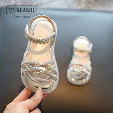 女童鞋子儿童公主凉鞋2025新款夏季夏款女孩宝宝水晶包头银色单鞋