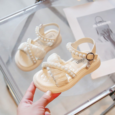 女童鞋子2024夏季新款儿童凉鞋软底珍珠小女孩公主鞋中大童沙滩鞋