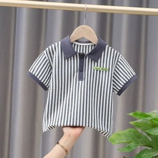 儿童宝宝POLO衫短袖夏季黑白条纹翻领小孩T恤亲子兄弟洋气上衣