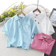 儿童装纯色珠地棉短袖男童带口袋POLO衫T恤夏季款新品中大童孩宝