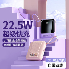 【带插头】充电宝超薄小巧便携自带线22.5W/瓦超级快充迷你适用苹果15/14Promax轻薄13plus华为小米手机口红